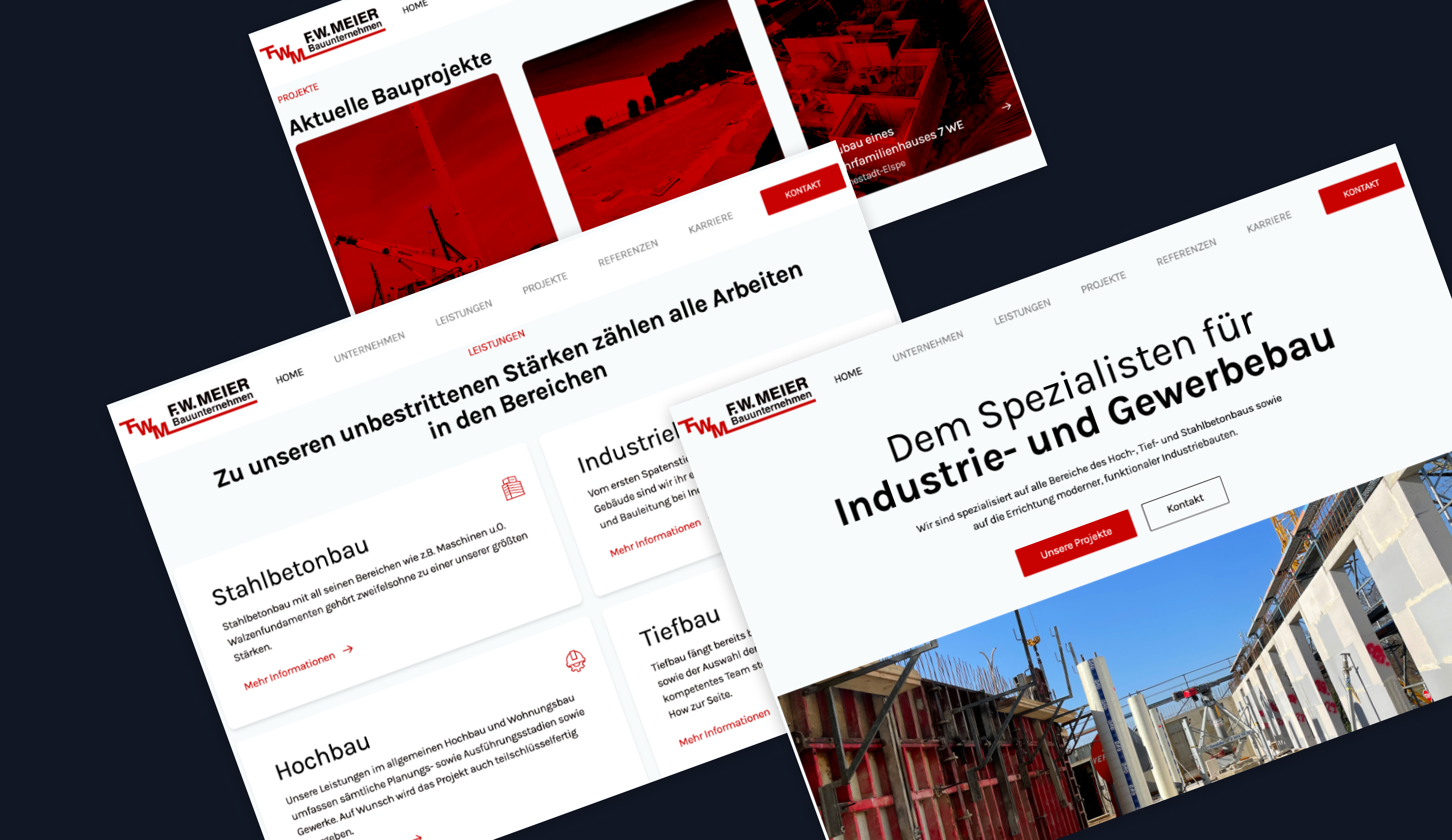 Für eine führende Baufirma haben wir eine modernisierte Webseite entwickelt, die nicht nur ästhetisch ansprechend ist, sondern auch eine benutzerfreundliche Navigation bietet. Unsere maßgeschneiderte Lösung integriert branchenführende Technologien und visuelle Elemente, um das Markenimage zu stärken und eine optimale Online-Präsenz zu gewährleisten.